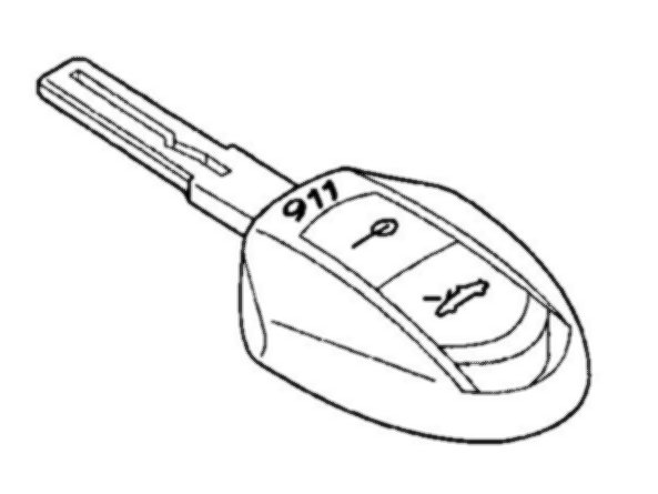 Key blade, circuit board, and transponder of the standard vehicle key are compatible with the housing of the "Design" key. The "Design" key is only available for hand-held transmitters with 2 buttons (central locking system and luggage-compartment lid). It is not possible to convert hand-held transmitters with 3 buttons (central locking system, luggage-compartment lid, and convertible top