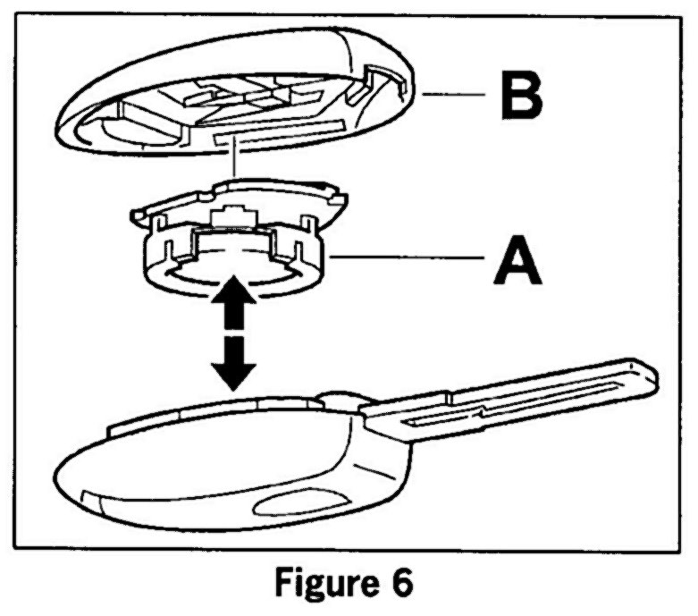 2.1 Insert transponder in lower part of key housing, Figure 4, item A and secure with adhesive.