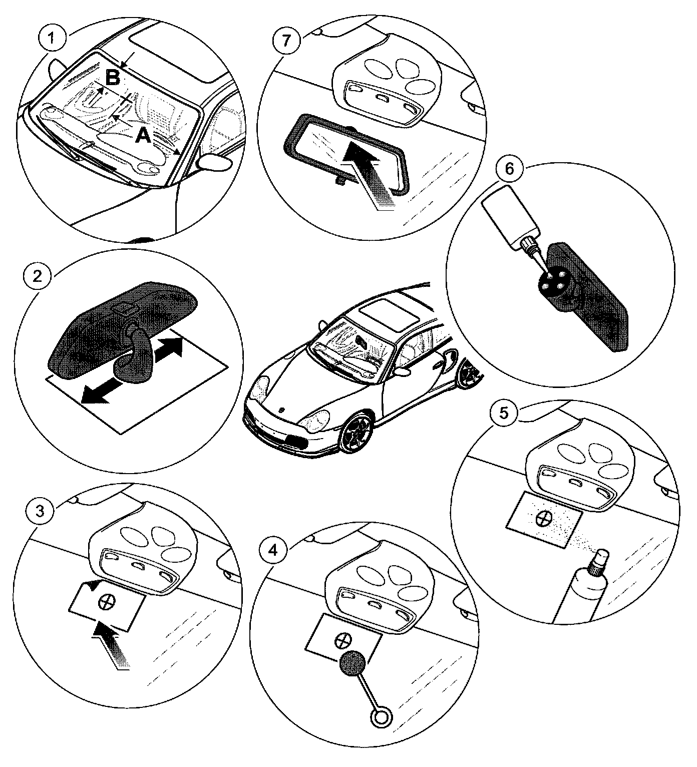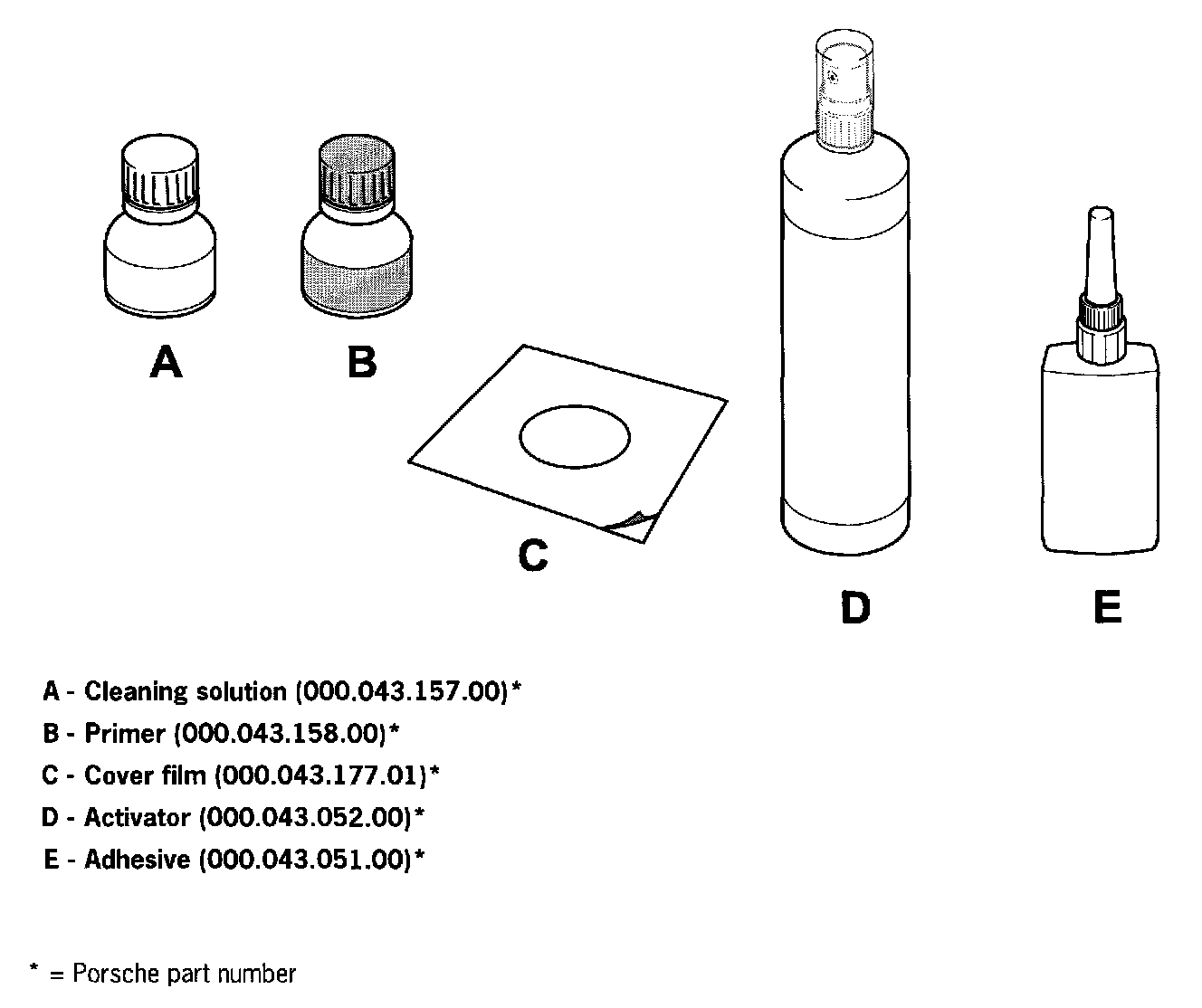 The materials shown are required to bond on the complete interior rearview mirror.