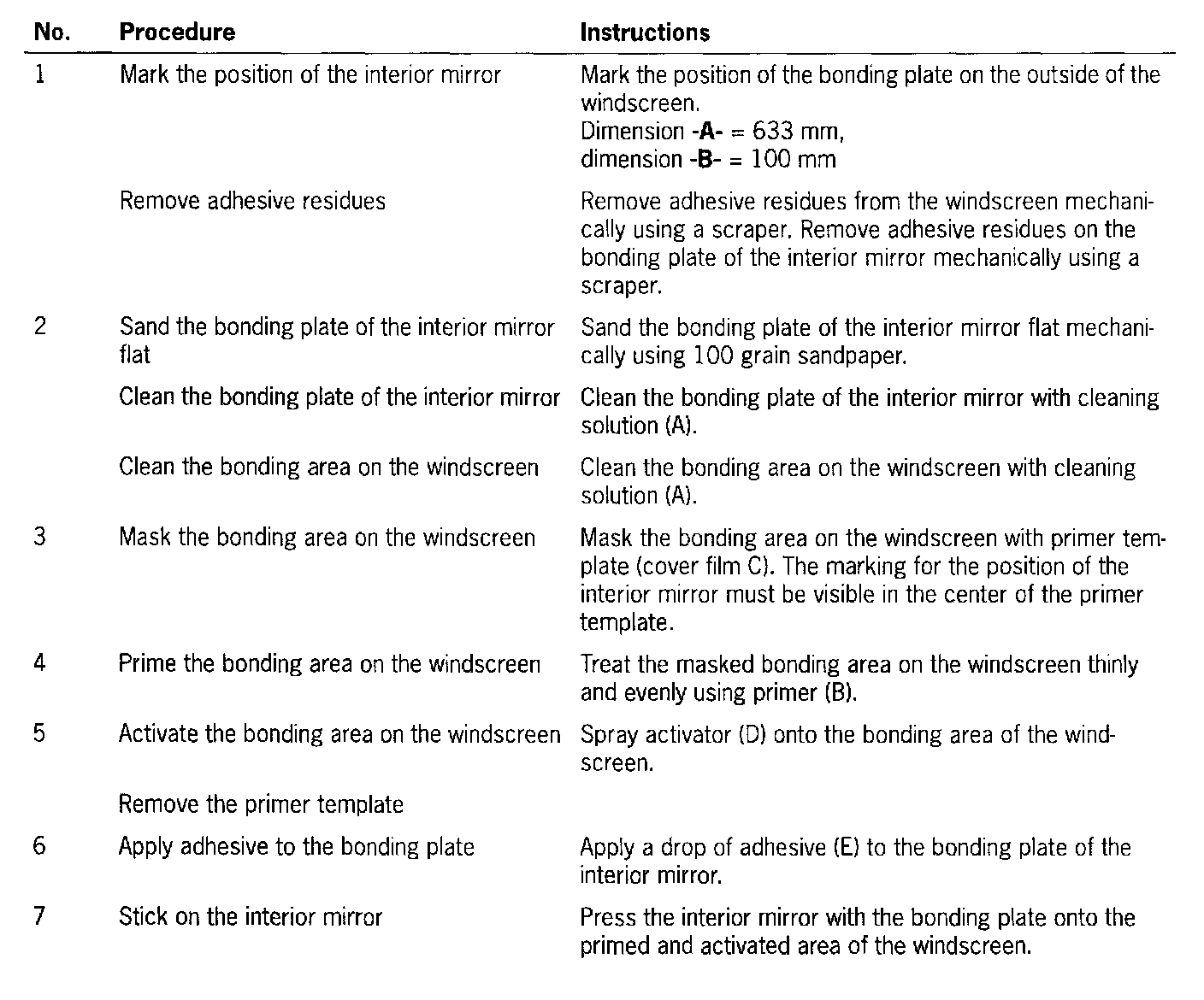 Bonding Materials, Interior Rearview Mirror:
