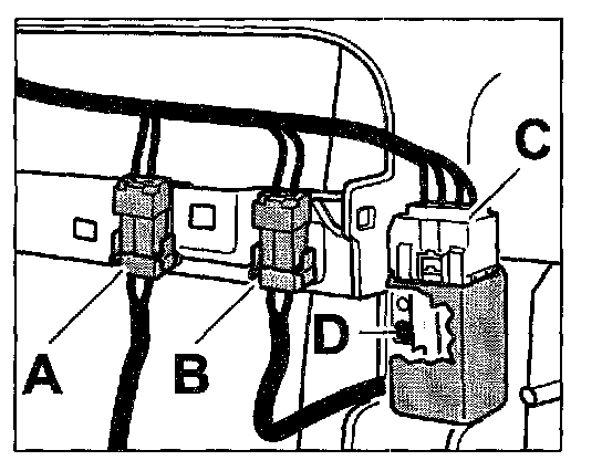1. First insert the seat heating pin housing -C-, then the belt buckle -D- into the flat connector.