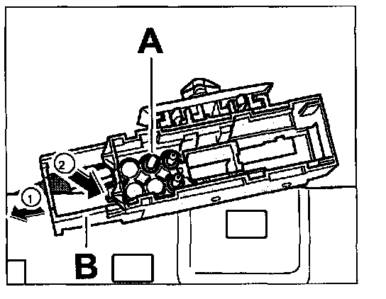 2. Push fuse -2- away from flat connector in -direction of arrow 2-.