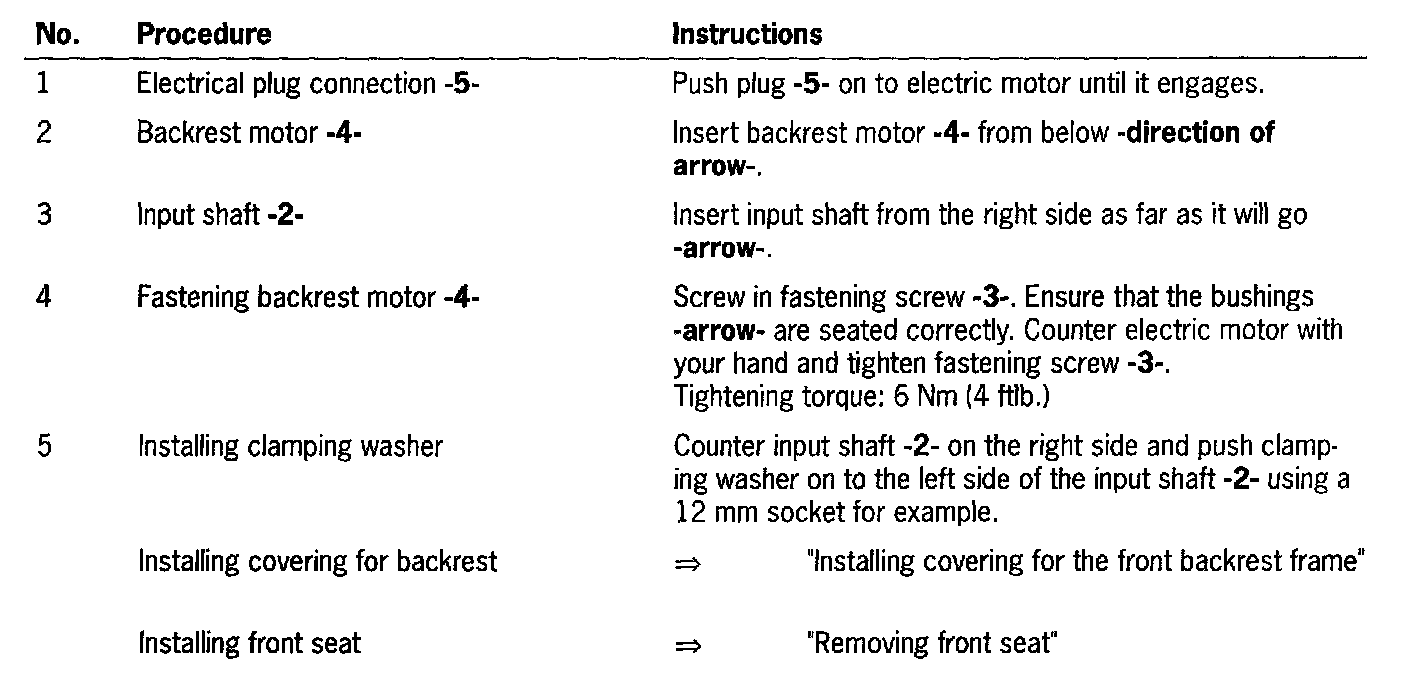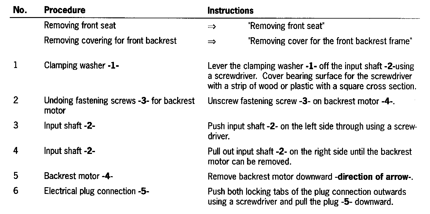 Removing and Installing Electric Motor For the Backrest Adjustment