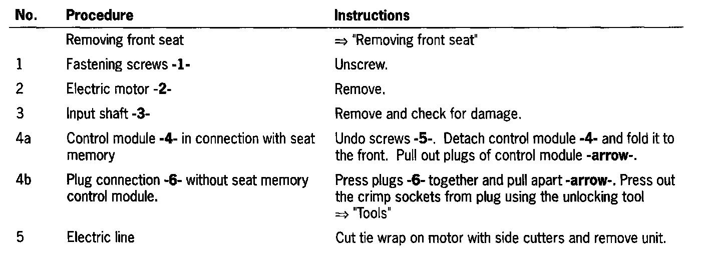 Removing and Installing Electric Motor for the Front Seat Height Adjustment