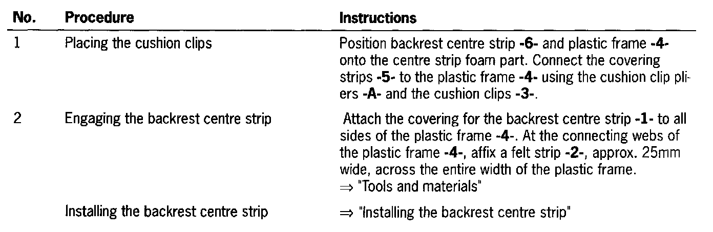 Replacing Covering For Backrest Centre Strip