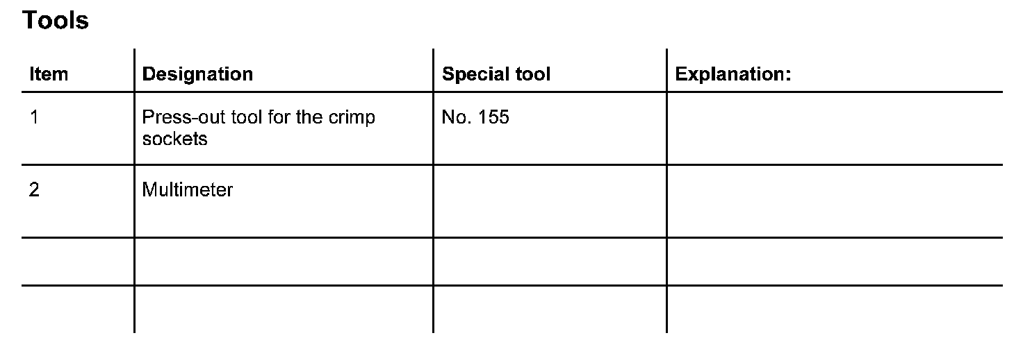 In the case of the complaint "seat height adjustment does not function", proceed according to test plan. As the seat functions vary, the test plan complies with the seat version with seat memory adjustment. Work aids: Use wiring diagram and multimeter -> Tools