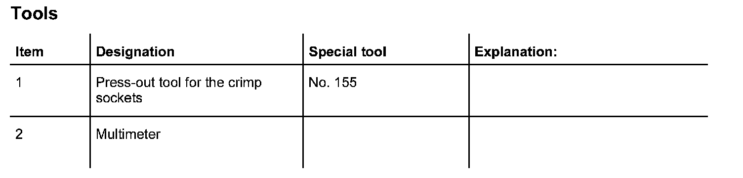 In the case of complaint "seat adjustment does not function", proceed according to test plan. As the seat functions vary, the test plan principally complies with the seat version with seat memory adjustment. Work aids: Use wiring diagram and multimeter. -> Tools