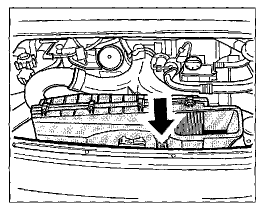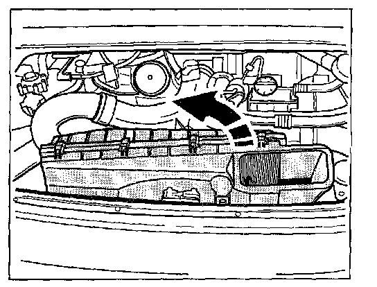 3. Tilt the air cleaner housing upwards to the right by 90° and then turn the air cleaner housing and remove from the engine compartment.