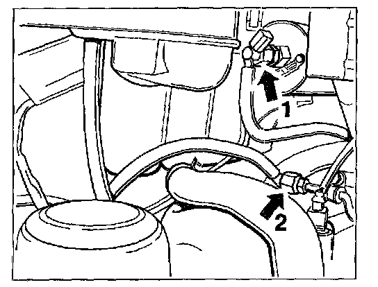8. Unscrew fuel return line -1- and fuel supply line -2-. It is important to counter when performing this step.