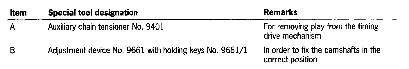 NOTE: Camshaft adjusting element must be positioned to the left-hand stop. Use special tool holding wrench No. 9653