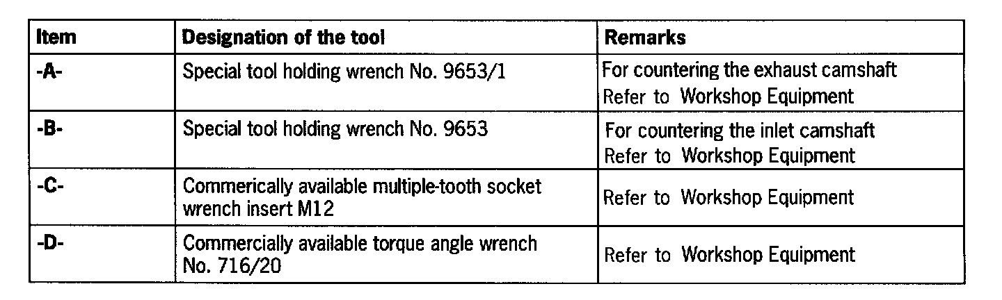 - The camshaft adjusting elements must be positioned to the left- hand stop. Use special tool holding wrench No. 9653