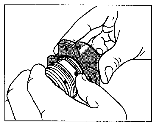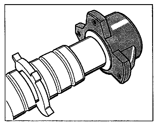 1. Mount the oil guide housing. Fit the oil guide housing above the three sealing rings of the inlet camshaft. The oil guide housing should be lightly oiled for this purpose. Press the sealing rings together by hand and push the oil guide housing over them.