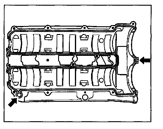 16. Install camshaft housing cover. Apply a silicone bead of a maximum 1.5 mm -Figure- (drying time of sealant approx. 5 mm). Put on the camshaft housing cover and tighten the 15 fastening screws from the inside to tightening torque.