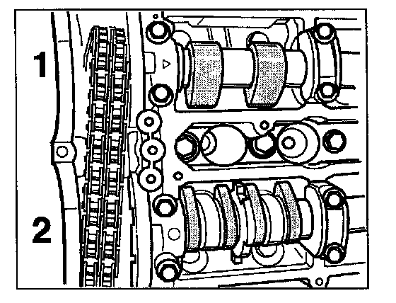 NOTE: Camshaft adjusting element must be positioned to the left-hand stop! Use special tool holding wrench No. 9653