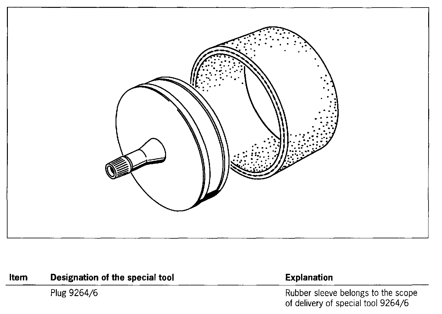 4. Push rubber sleeve of special tool 9264/6 onto the plug.