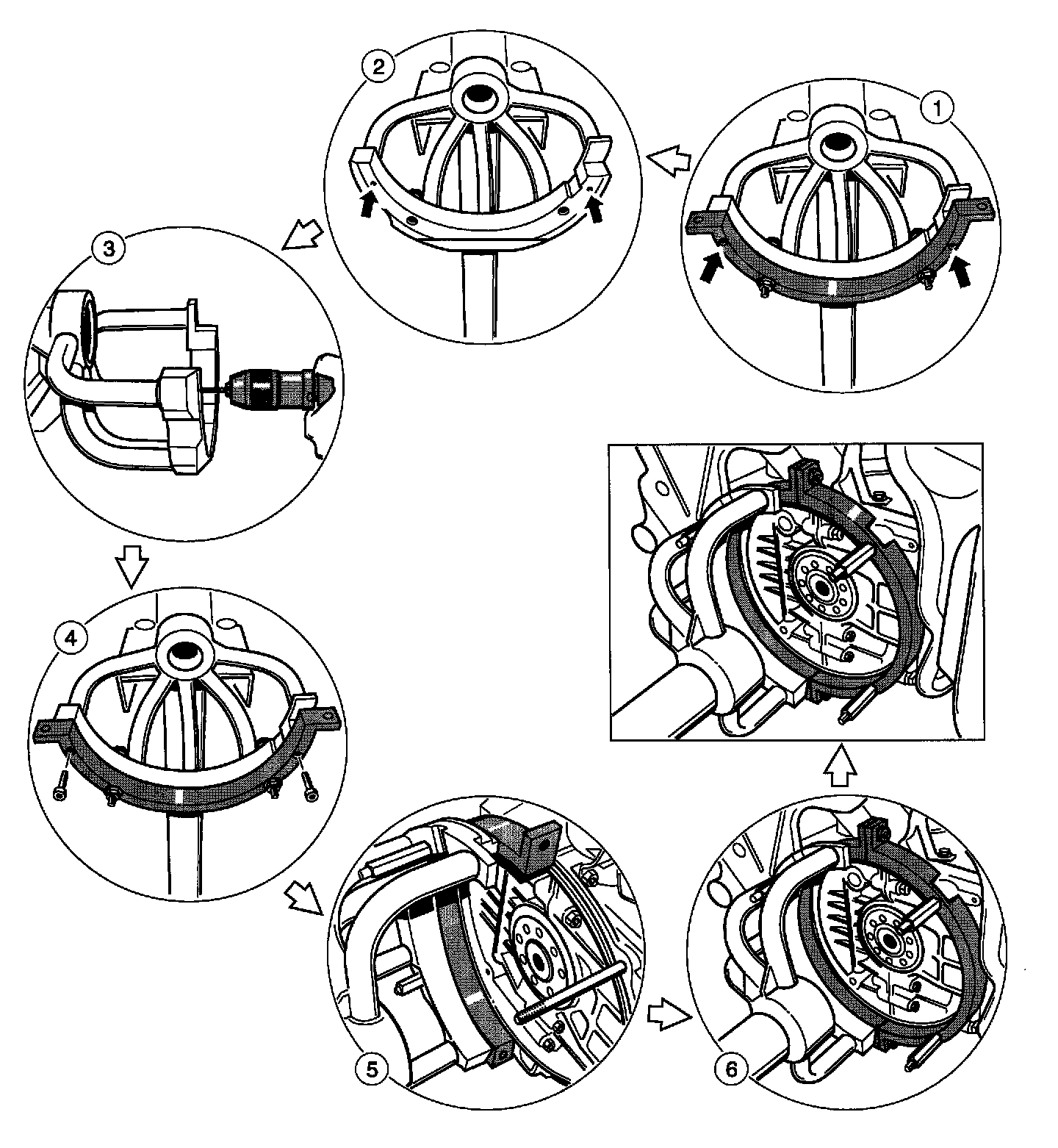 1. Position the toothed segment special tool P201b on the stud and undo the pan-head screws of the clutch pressure plate in several stages and in diametrically opposite sequence, to avoid deforming the thrust plate.