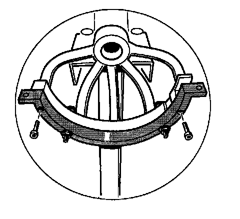 1. Centring adapter on engine holder. Fasten the adapter half with the already made bores -arrows- with two auxiliary screws M1O x 60 onto the engine holder. Spot-drill or countersink the engine holder slightly through the bores in the adapter ring using a drill bit 6.5mm. The adapter ring serves as the drilling template.