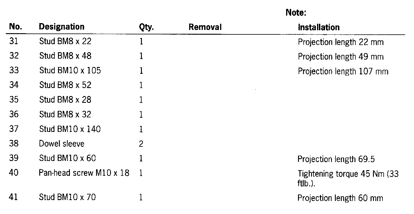 6. Mount the second adapter half on crankcase. Screw the screw sleeves onto the studs and tighten by hand. Screw in connecting screws of the adapter half and tighten with 10 Nm (7.5 ftlb.). Subsequently tighten the assembly sleeves.