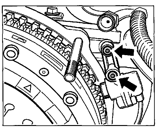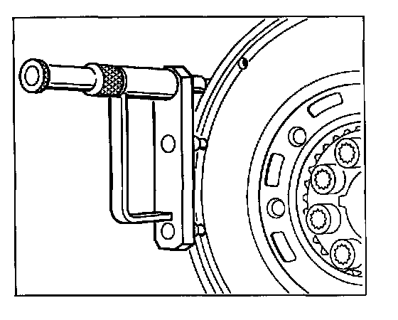 2. Fasten mounting device P238b with holder P14O onto the studs. Loosen flywheel screws and remove the flywheel. Make sure that the pulse sender is not damaged.