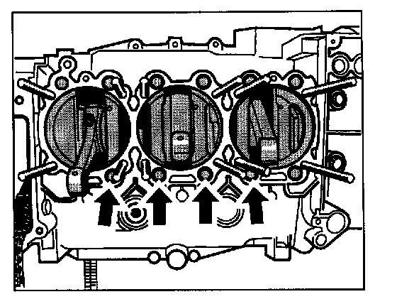The tension rod bolts in thrust blocks 2, 3, 4 and 5 -arrows- can only be removed after removing the crankcase half (cylinder bank 1-3).
