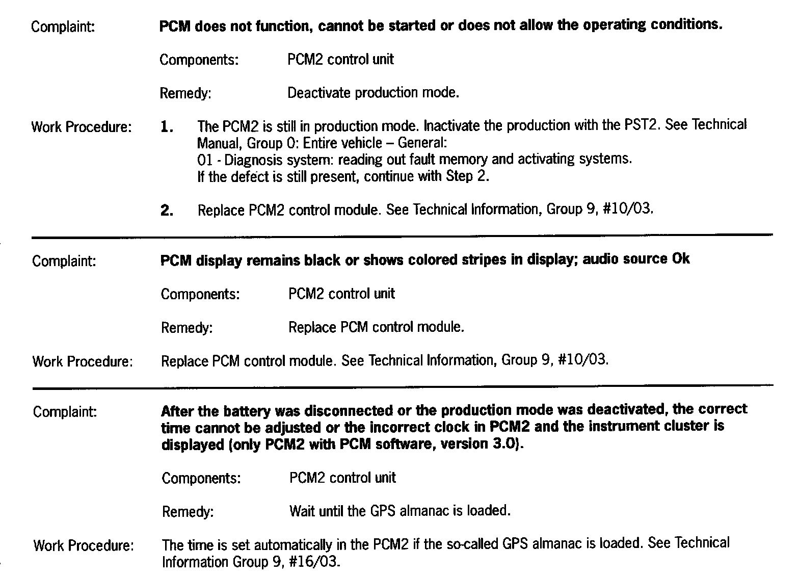 PCM2 System - Diagnosis and Repair
