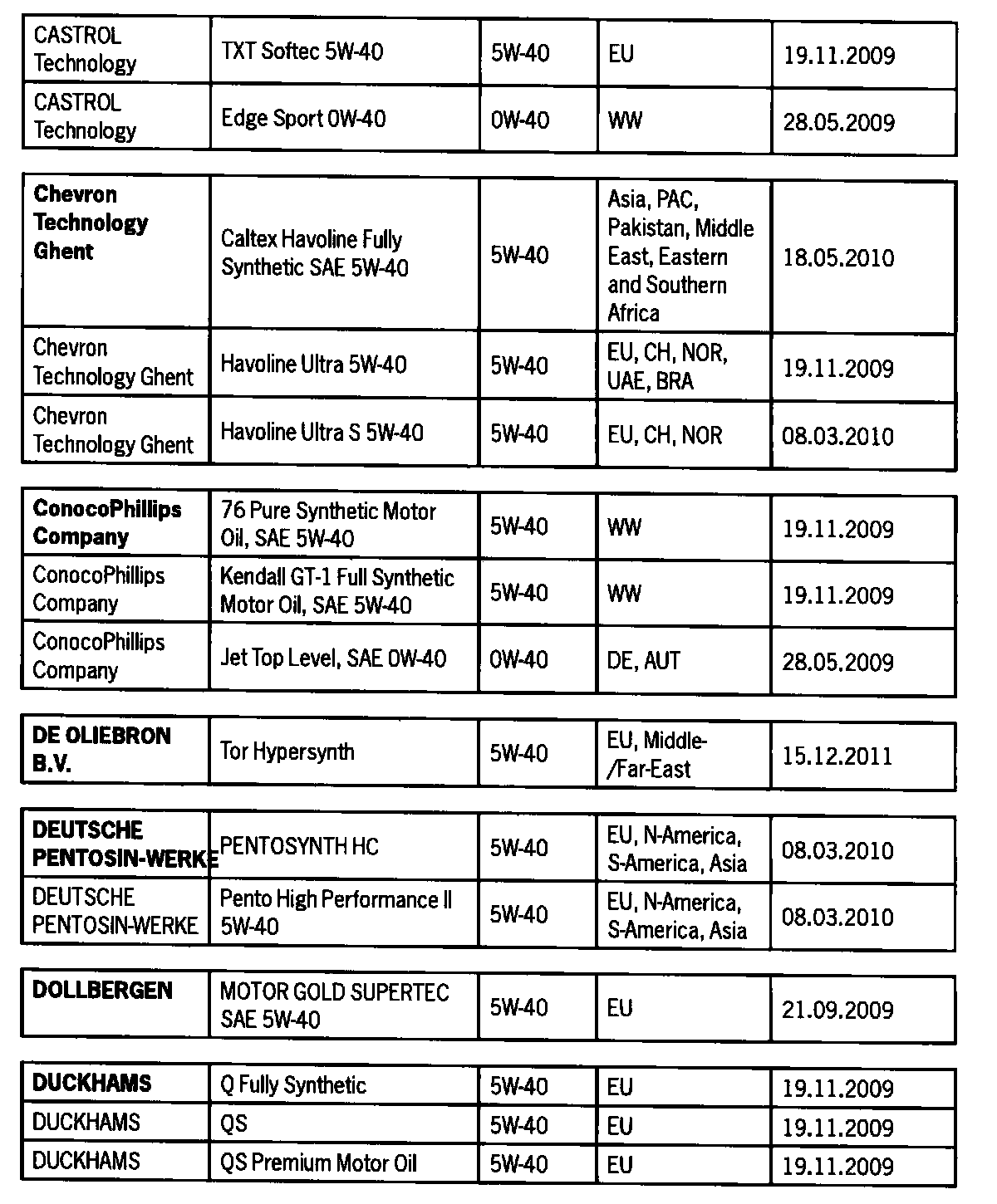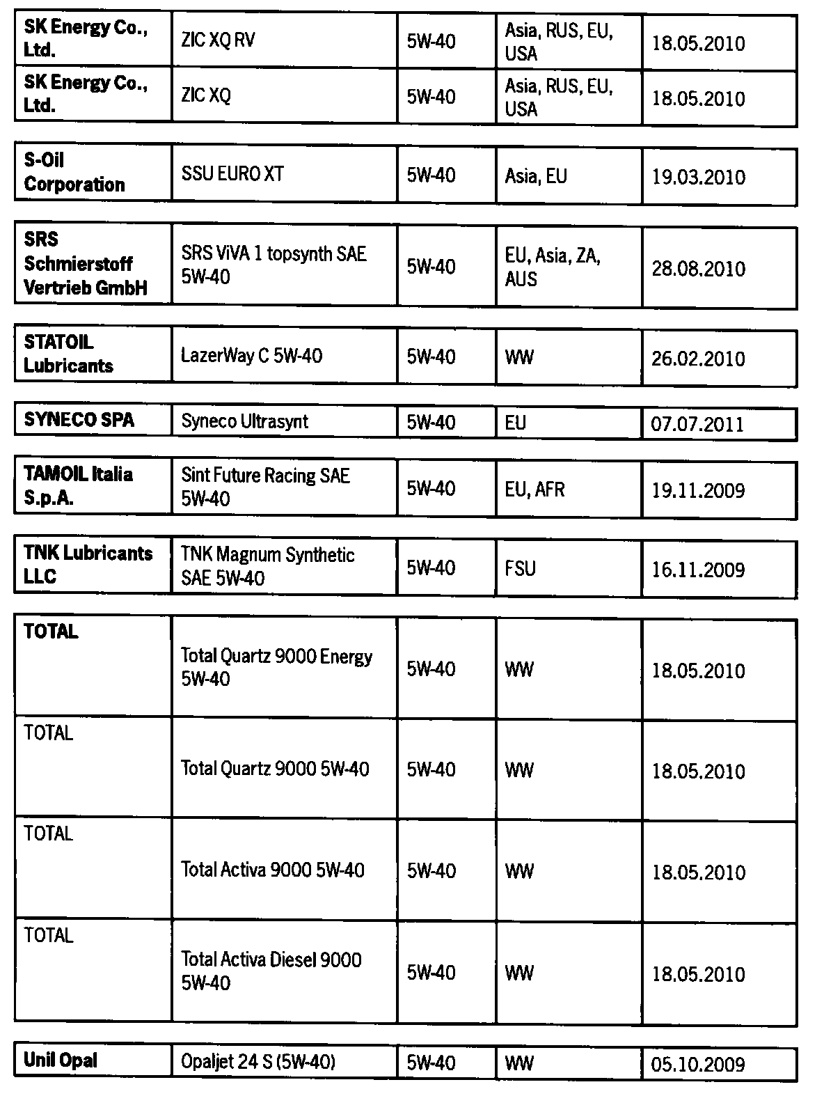 Overview of Approved Porsche A40 Engine Oils (37/08)