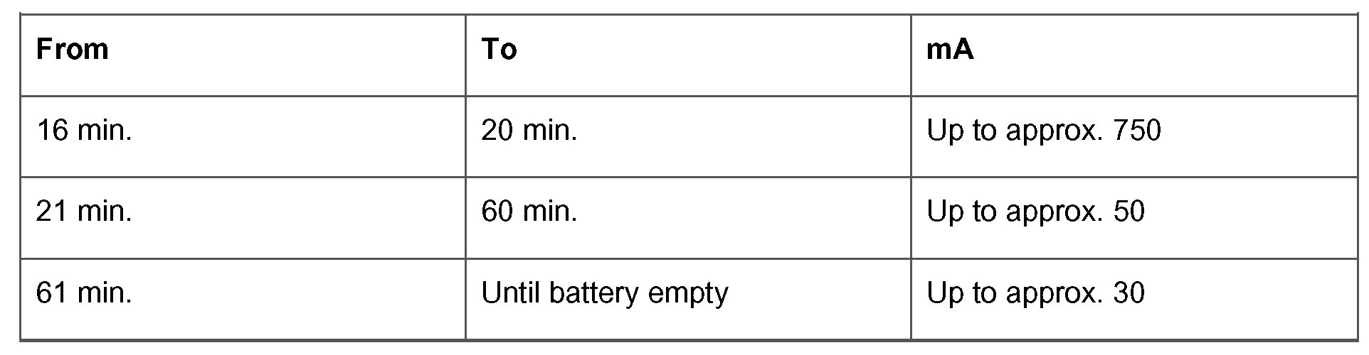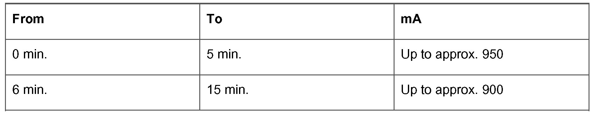- If the value of the closed-circuit current is higher than the value determined in the table, the cause must be established.