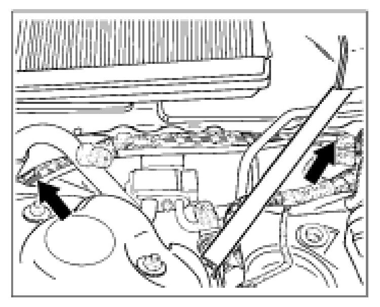 - Disconnection point, front right: Join wires between the -arrows- with crimp connectors.