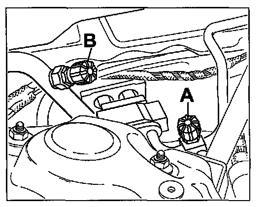 2. Open the engine compartment lid and disconnect the refrigerant lines from the fuel cooler. Immediately seal the openings with suitable plugs.