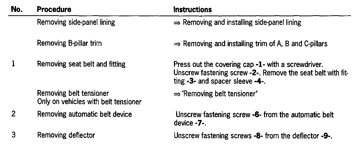 Removing and Installing Front Three-Point Belt