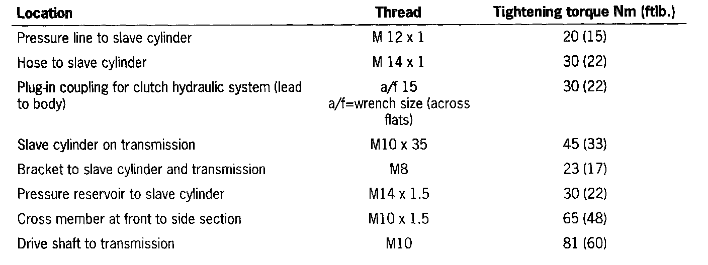 Clutch Tightening Specifications