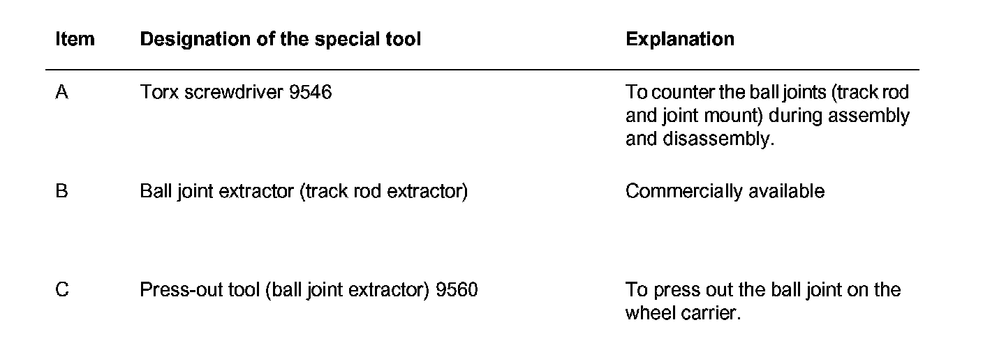 ^ Use a commercially available track rod extractor to press off the track rod -2-!