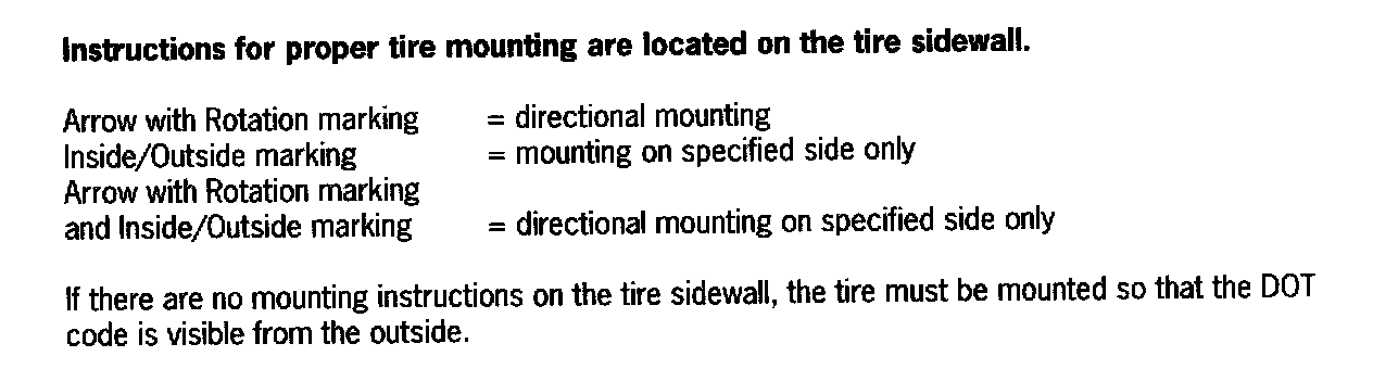 Always observe any possible instructions concerning the rolling direction and/or specifying which side the tires must be mounted on.