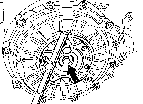 5. Unscrew fastening screw for flanged shaft (Figure shows removed transmission).