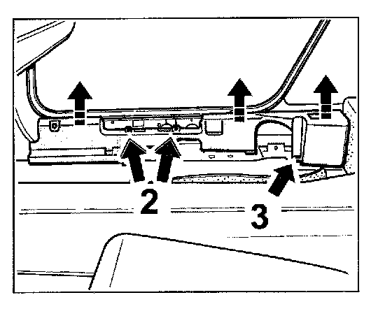 4. Unscrew fastening screws -2- and nuts -3- and carefully pull the support up and out of the retaining points.