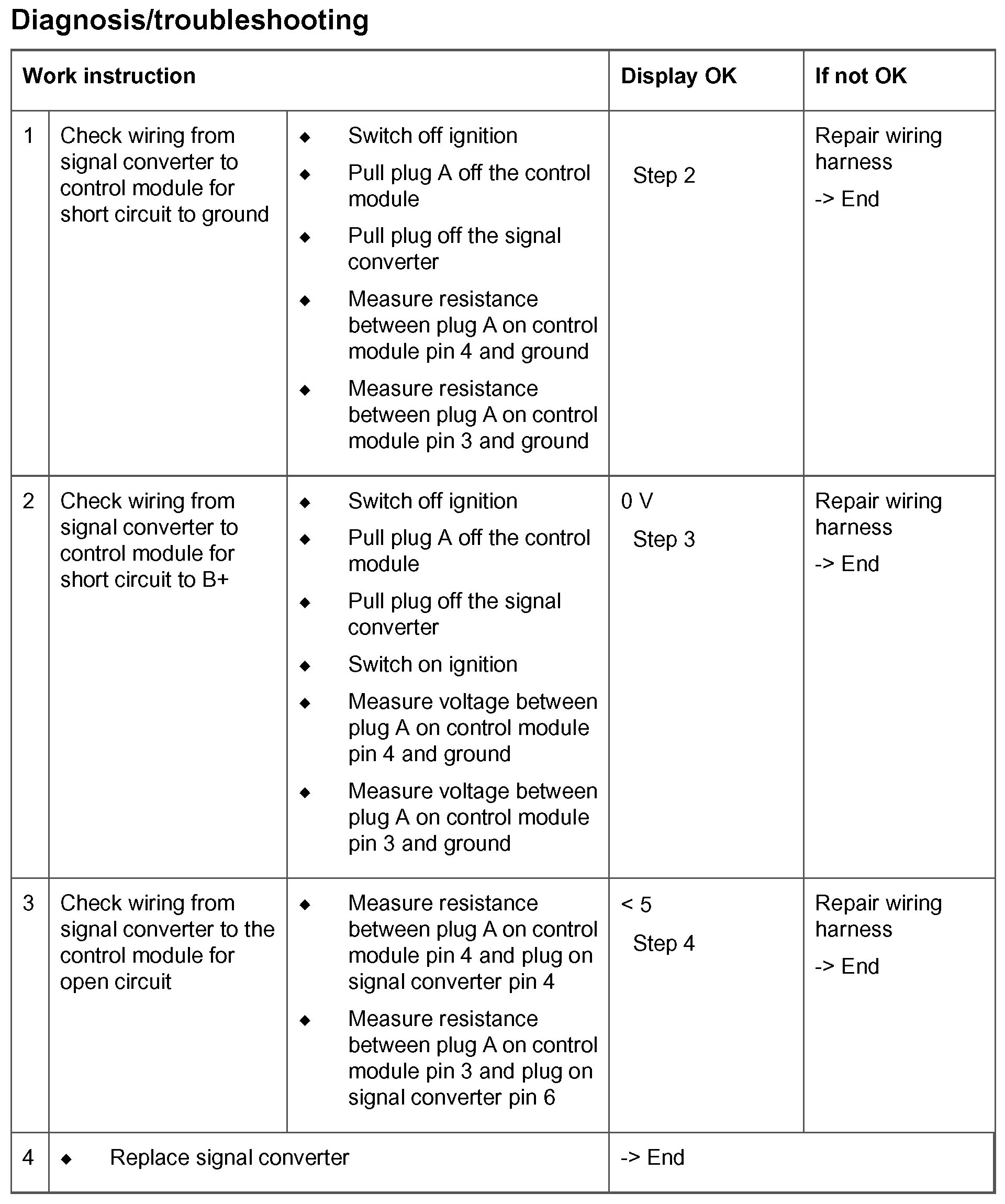 Status lead, signal converter, short circuit to B+