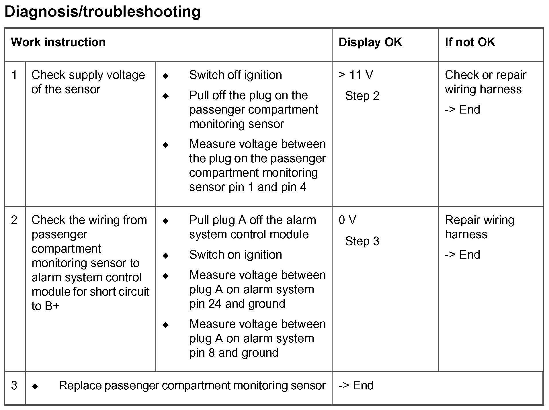Passenger compartment monitoring sensor, short circuit to B+ or faulty