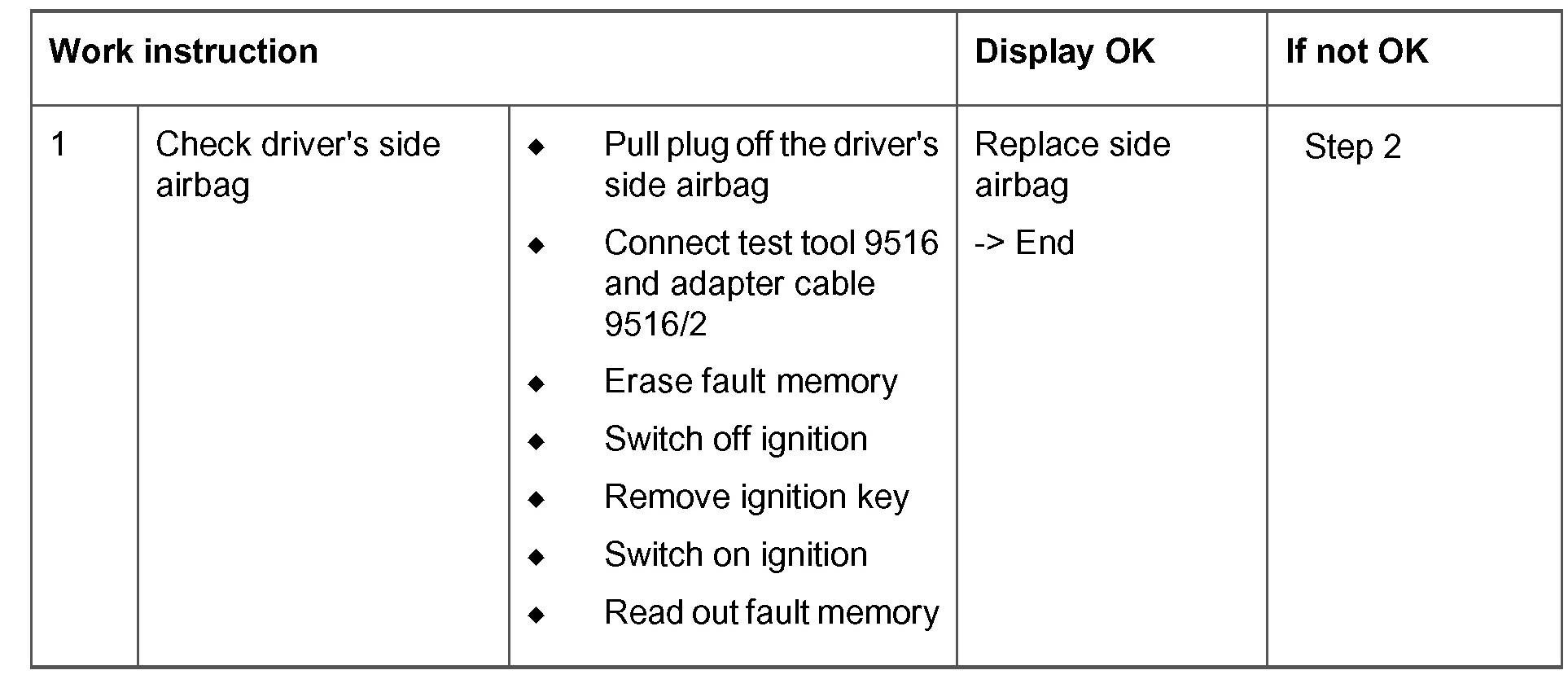 Test tool 9516 and adapter cable 9516/2 instead of the driver's side airbag