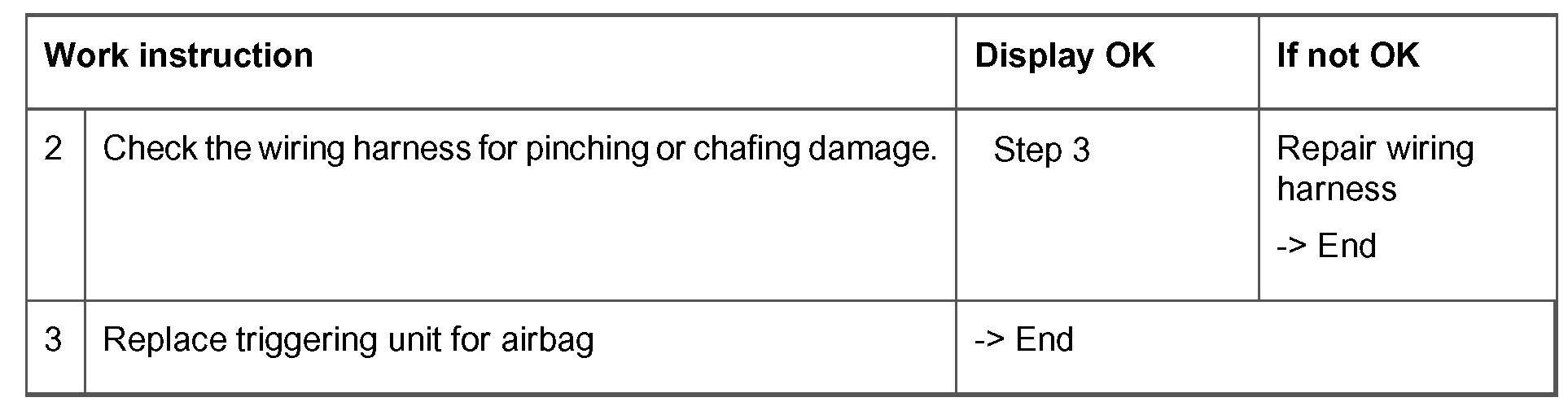 - Short circuit to B+/ground or open circuit in the wiring between the driver's side airbag unit and the airbag triggering unit