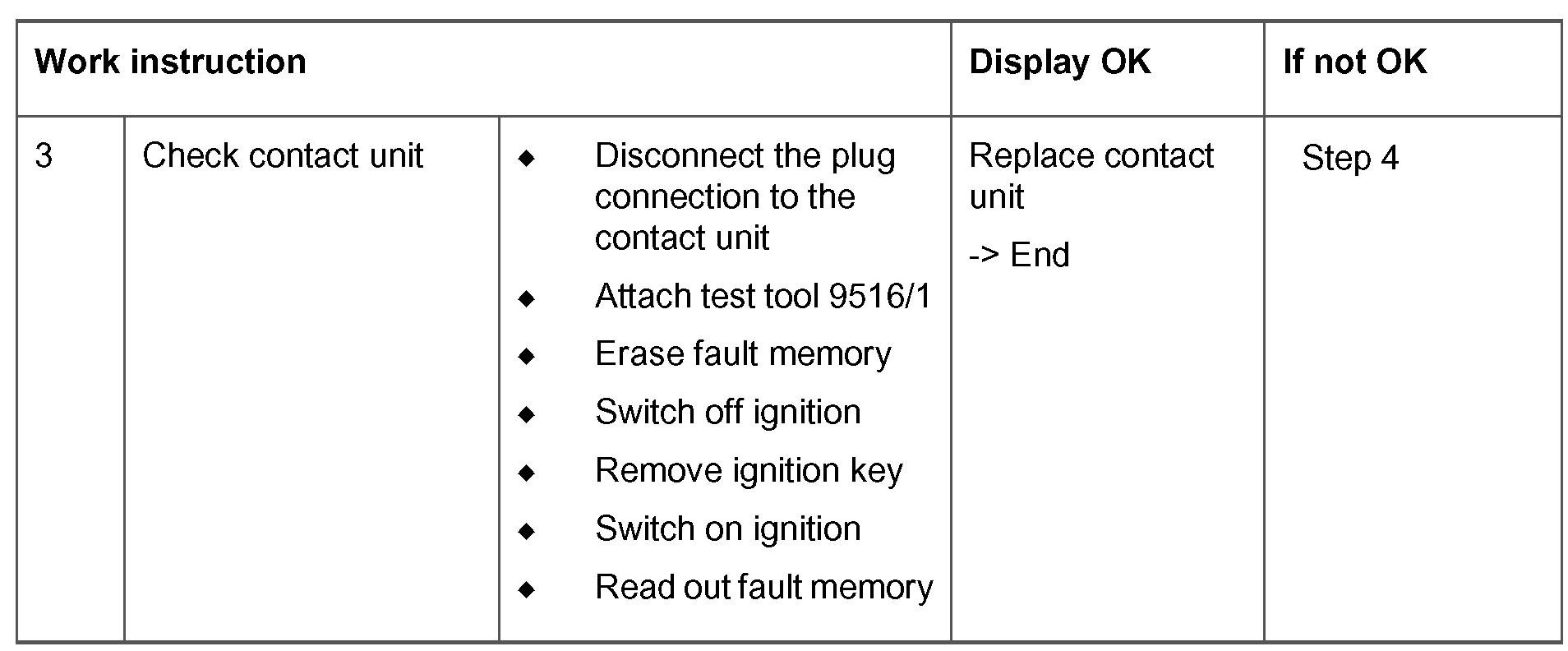 NOTE: If the fault memory is cleared, the ignition must be switched off, the ignition key removed and the ignition switched on again in order to check the fault path. Only in this way is another self-test carried out.