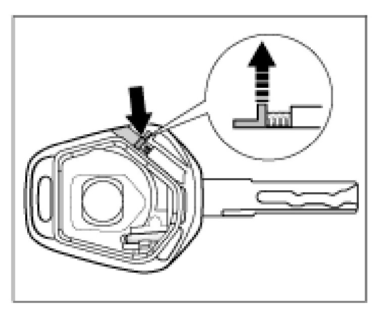 3. Push the sliding latch back and pull the key out of the bottom part.