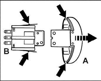 The hazard warning light switch -B- is held in the dashboard insert by two locking hooks.