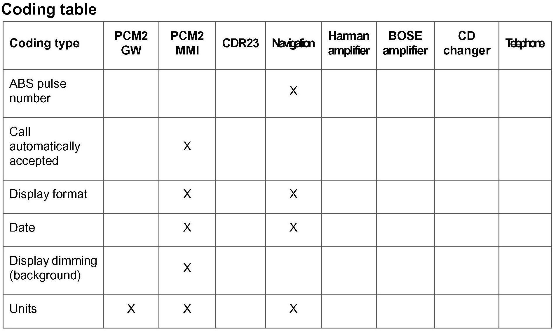 - Select Units in the PCM2 MMI coding menu and confirm with the >> key.