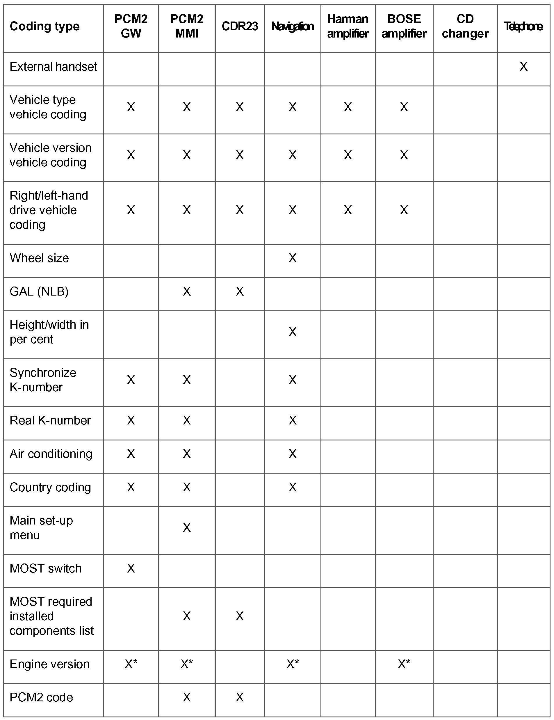Under this menu item, the PCM2 MMI corresponding to the vehicle type can be coded.