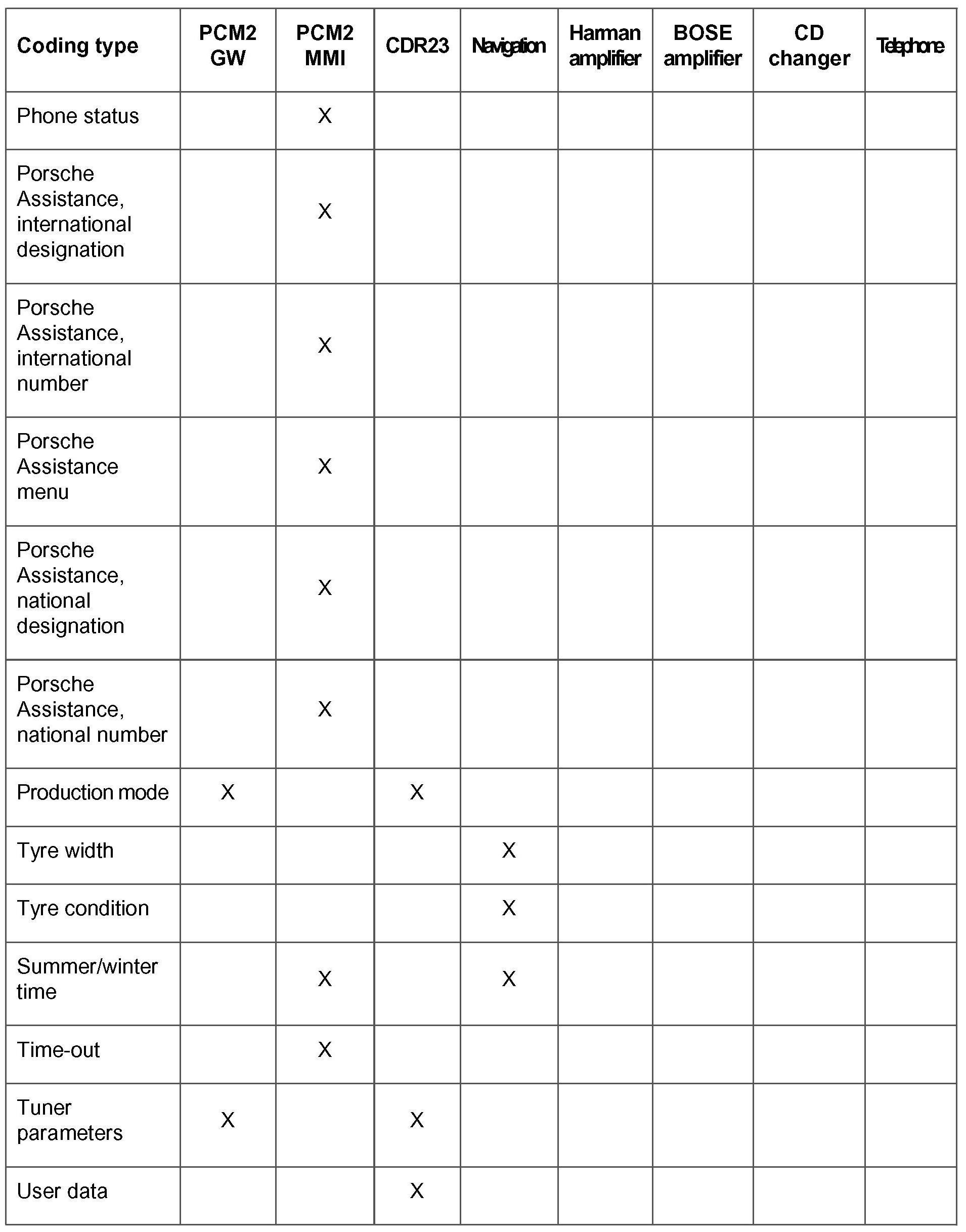 - Select Porsche Assistance, national designation in the Boxster PCM2 MMI coding and confirm with the >> key.