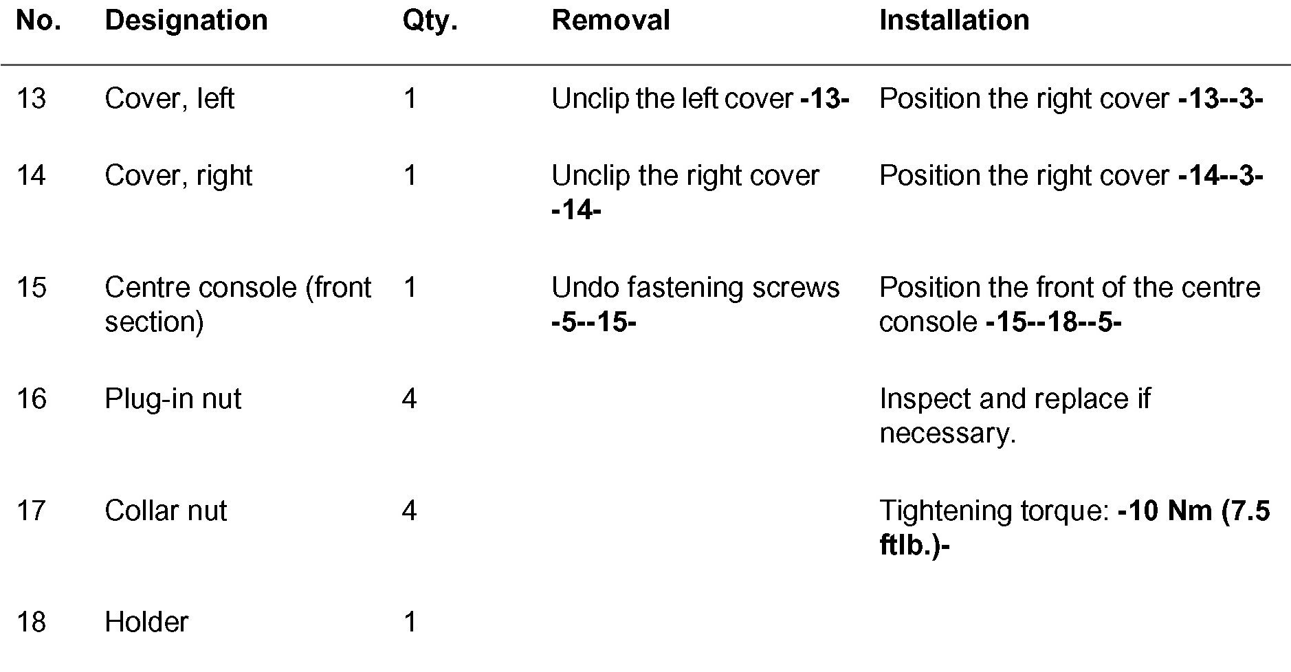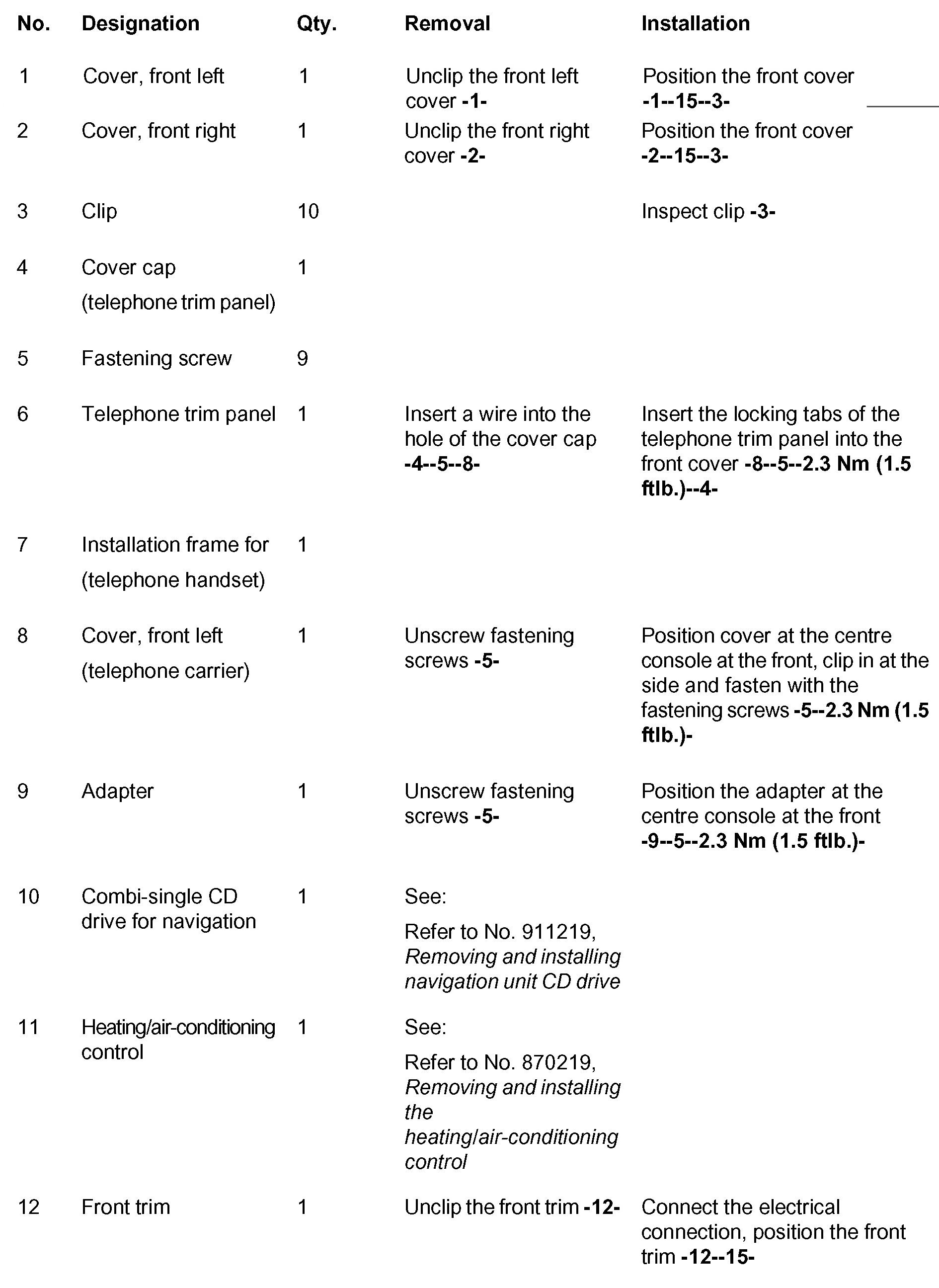 Removing and Installing Center Console (Front Section)