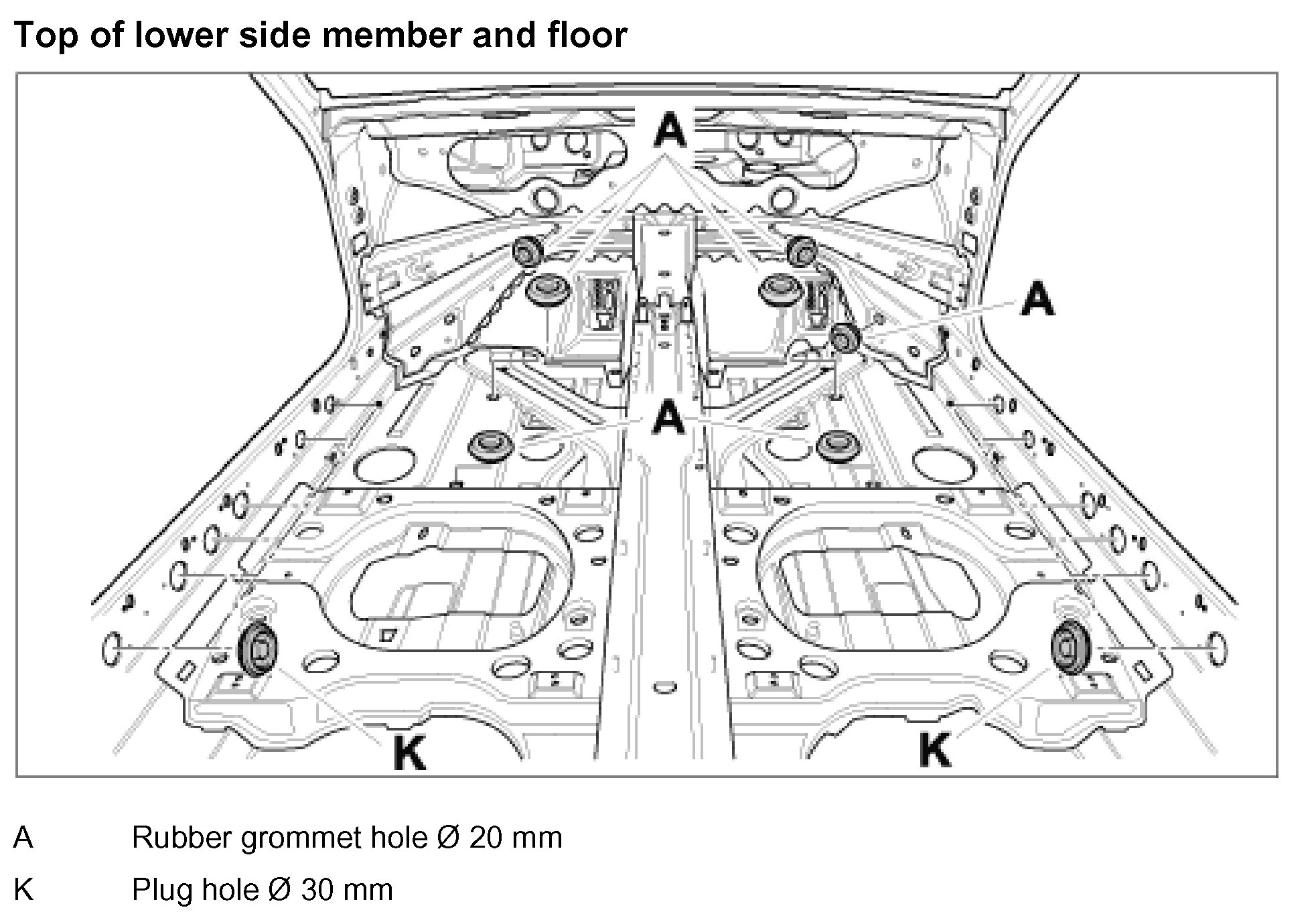 Top of lower side member and floor