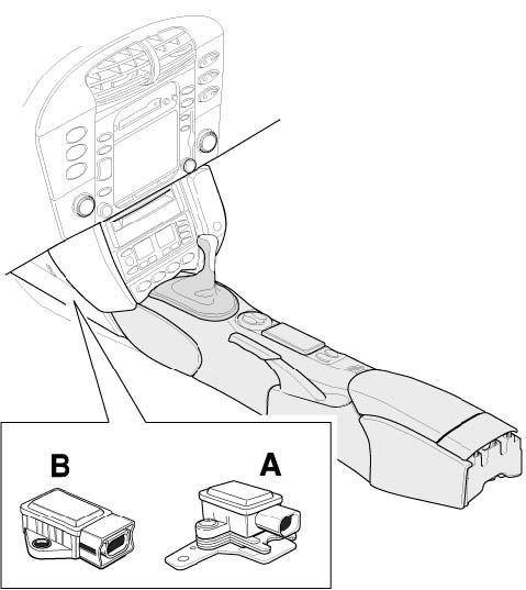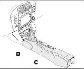 7. Install center console -C-. Then install center console front part -B-.