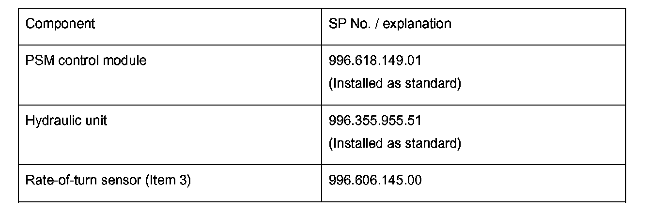 Conversion of rate-of-turn sensorTwo versions of the rate-of-turn sensor have been installed for the PSM (Porsche Stability Management) system in the 911 Turbo (996) since the production launch of this vehicle. The first version -A- with part number 996.606.147.00 and the new/current version -B- with part number 996.606.145.00.