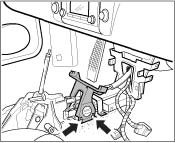 7. Unlock plug of the rate-of-turn sensor with the ignition switched off -arrow on the plug- and pull it off. Undo fastening nuts -arrows- and remove the rate-of-turn sensor with bow.